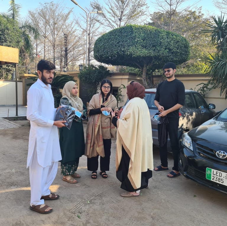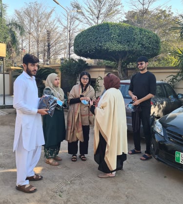 Our volunteers preparing to visit the Muzaffargarh shelter, ready to bring smiles, compassion, and hope to those in need.